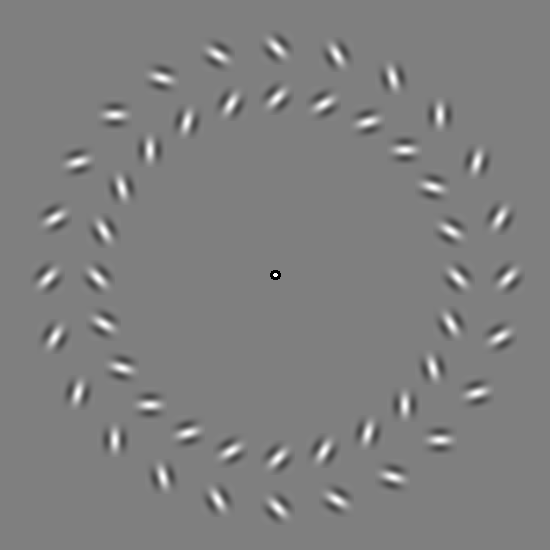 In the image below (which I have adapted from an illusion by Kitoaka) there are three greenish “spokes” rotating counterclockwise. (You can download a script to generate this type of images here.)