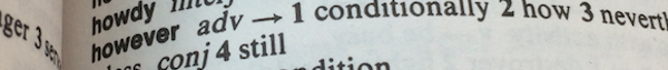 But 'however' is just the cumbersome cousin of the delicious, nimble, and flexible 'but' (frequency in everyday language: 4400 per million). Look: